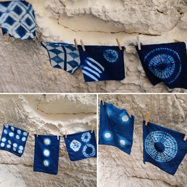 Je suis depuis toujours animée par un désir de transmission de mes connaissances et savoir-faire. Je vous propose donc de vous initier à la teinture indigo et au shibori en partageant avec vous mes pratiques à l’occasion de demi-journées découverte ou stages dans mon atelier de Marseille.